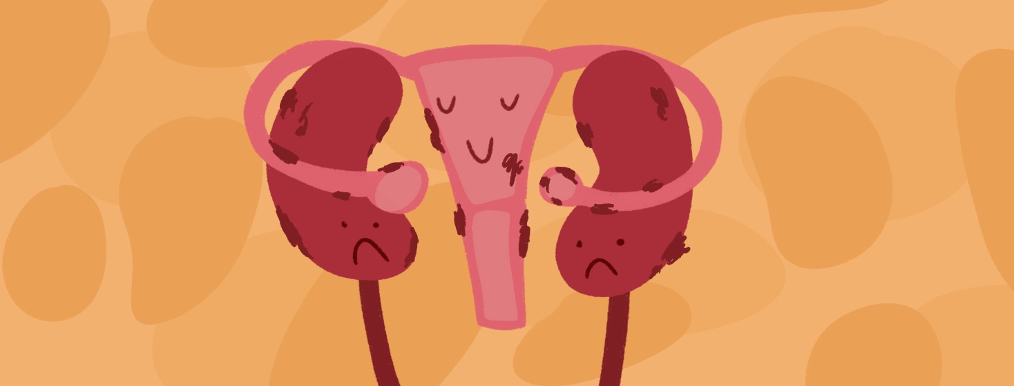 In rare cases, endometriosis forms inside or on the kidneys themselves. For instance, cysts filled with blood can grow on the kidneys, like the chocolate cysts that endometriosis causes on ovaries.
