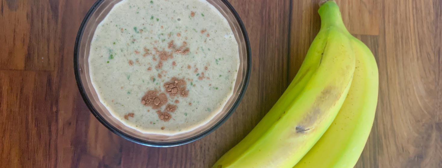 - Add all of the ingredients to your blender. If you have a small one, blitz the banana, leafy vegetables and peanut butter first, then add the milk, a little at a time.